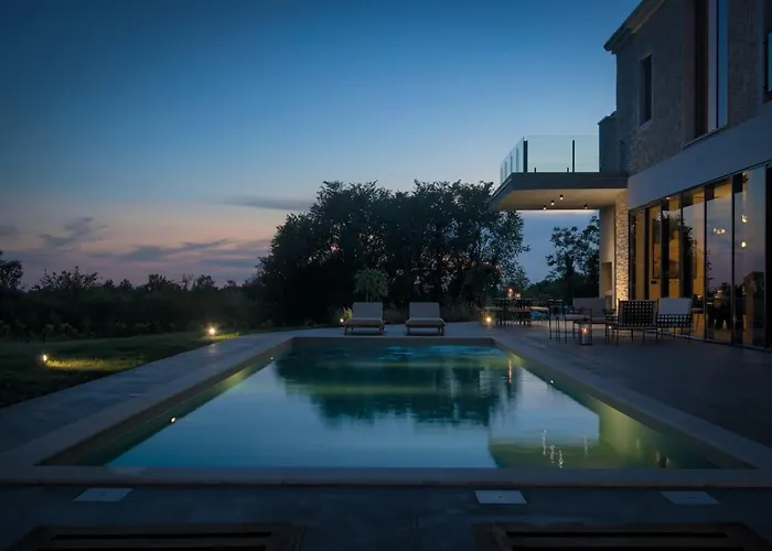 Residencija Valens s 4 spavaće sobe udaljena je otprilike 10 minuta vožnje automobilom od doline Limska draga i unutar 10 minuta vožnje od Sv. Petra. Sauna i vanjski bazen dostupni su u ovoj nekretnini.